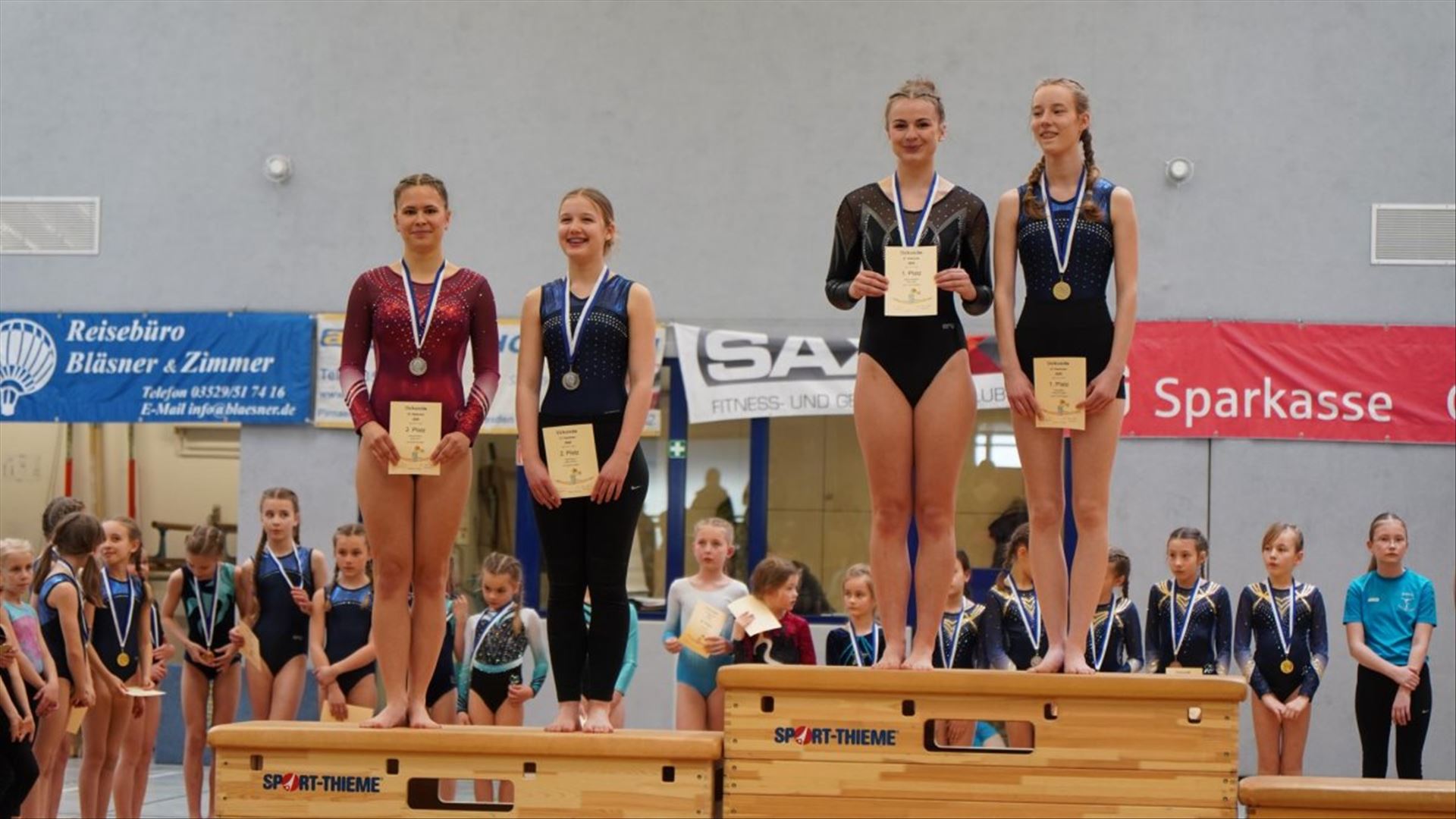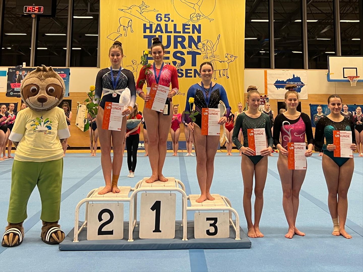 Umso größer war dann die Überraschung, dass es trotzdem für alle drei zu tollen Platzierungen reichte. Elsa erturnte sich Platz 9, für Tina reichte es am Ende für den 6. Platz und Julia konnte sich mit zwei weiteren Turnerinnen aus Dresden und Leipzig den 2. Platz teilen und wurde nach dem 2. Platz im Vorjahr erneut Vizesachsenmeisterin.