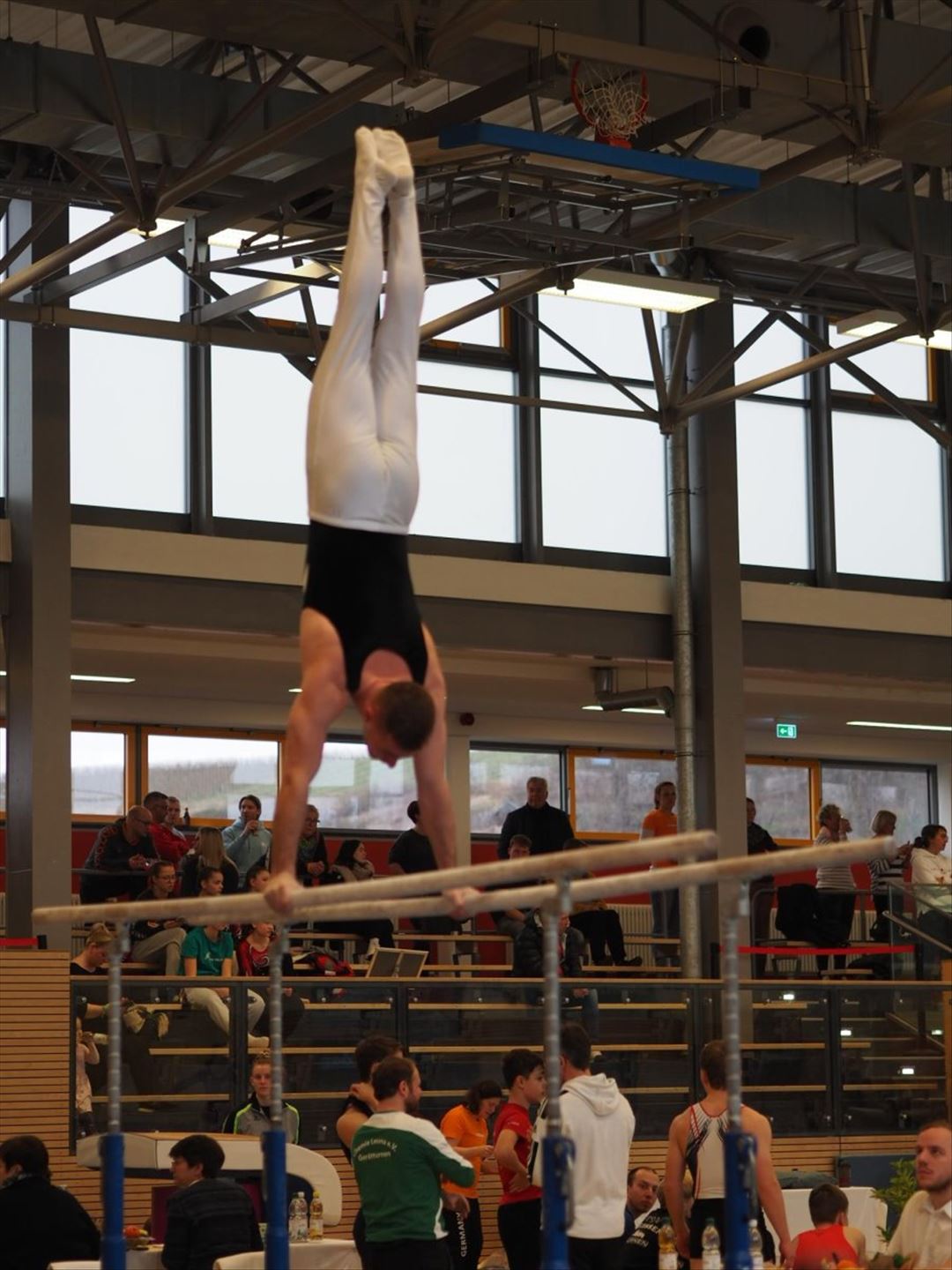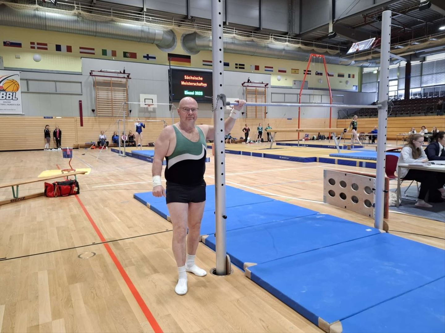 Bodo turnte wie gewohnt sauber an Boden und Barren. Auch glückte ihm eine gute Sprunghocke über den Tisch. In Abhängigkeit von seiner Tagesform musste er aber Pauschenpferd und Reck auslassen und landete somit auf Platz 4. Da aber einer seiner Konkurrenten nur außer Konkurrenz angetreten war, qualifiziert sich Bodo trotzdem zu den Deutschen Seniorenmeisterschaften Ende Mai in Leipzig.