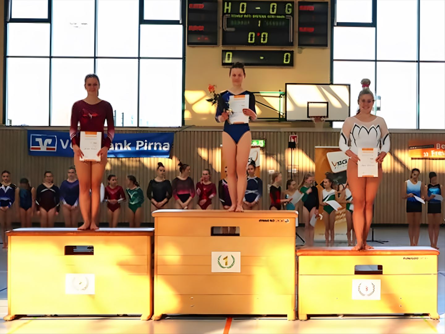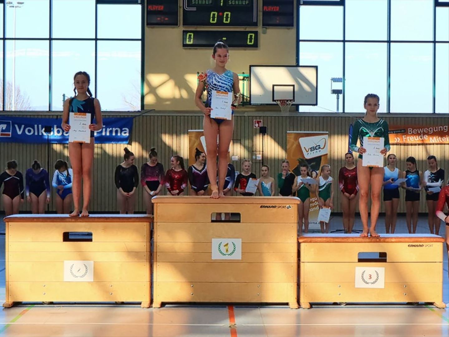 Für den SV Wesenitztal starteten insgesamt 14 Turnerinnen gegen die Konkurrenz aus Pirna und Heidenau. Richtig gut gelang der Wettkampf Thea Vieluf sowie Amy Mauksch, die sich in der Leistungsklasse 3 bei den Kindern die Plätze 1 und 2 erturnen konnten. Ebenfalls aufs Podest schafften es Jasmin Weikert (2. Platz, LK4 – Jugend) sowie Merle Horschke (3. Platz, LK 4 – Kinder).