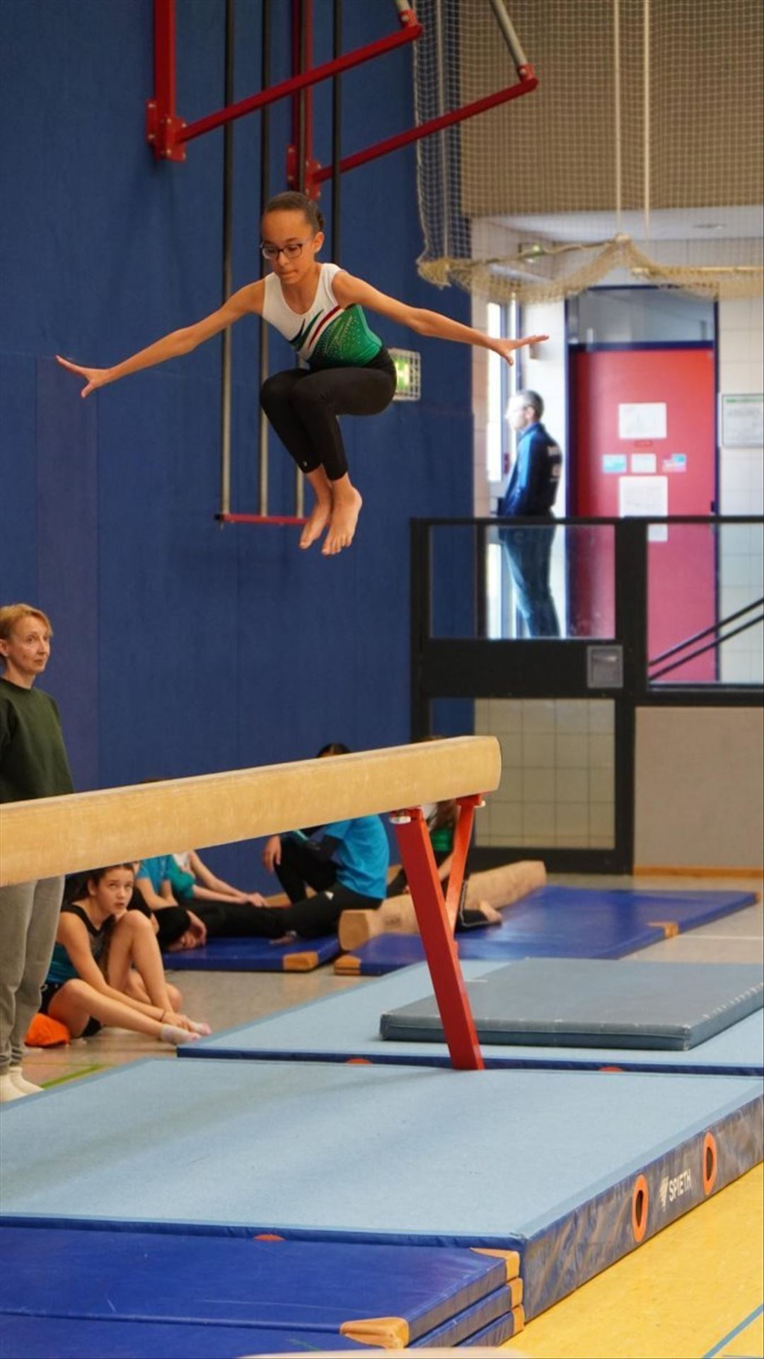 Am 15.11. fand für die Mädchen und Frauen der beiden Liga-Mannschaften der Abschlusswettkampf der diesjährigen Liga-Saison in Chemnitz statt. Zeitplanmäßig durchgemischt musste dieses Mal unsere LK3-Mannschaft mit Philine, Lise, Thea, Mira und Marie schon früh im 1. DG in der 3. Liga, Staffel 1 turnen. Aufgrund des kurzfristigen Ausfalls von Fiona und damit einer nicht ganz vollständigen Mannschaftsstärke erwischten die Mädels leider einen nicht ganz so guten Tag, so dass sie nach allen vier Geräten auf Platz 8 der Tageswertung landeten. Da am Ende zur Auswertung der Wettkampfsaison alle drei Ligawettkämpfe zusammengezählt werden und die Mannschaft vorher bessere Platzierungen erzielen konnte, lagen sie zum Schluss auf Platz 7, was dennoch den Abstieg in Staffel 2 bedeutete. Daher wird jetzt umso fleißiger trainiert, um nächstes Jahr erneut angreifen zu können.