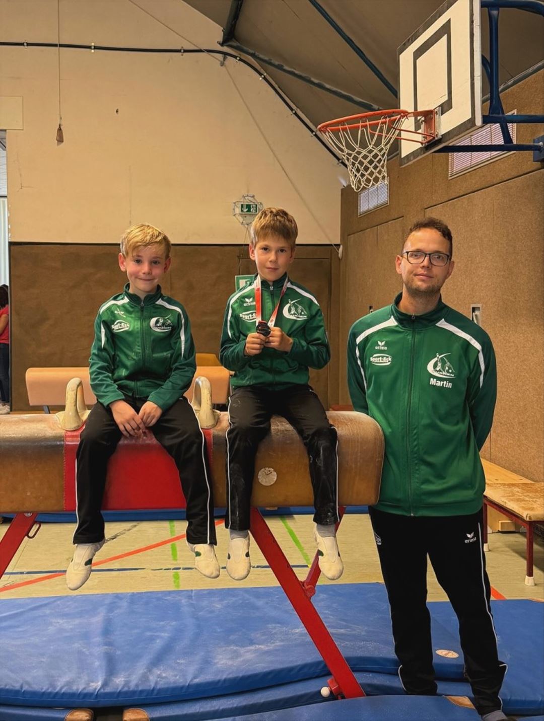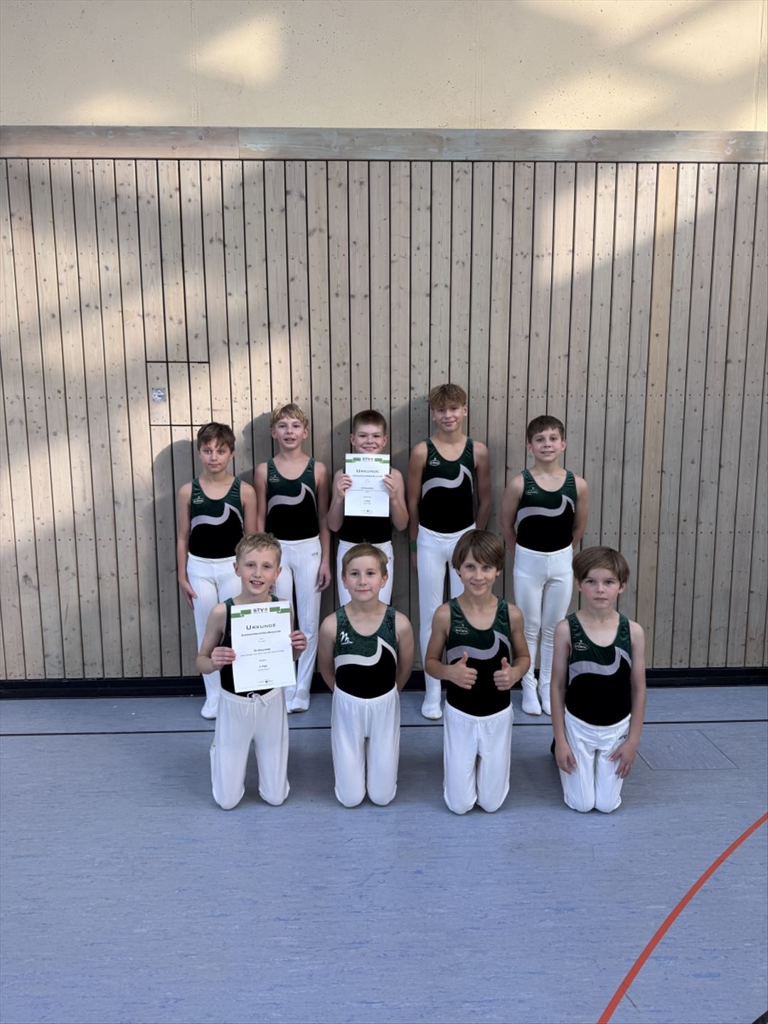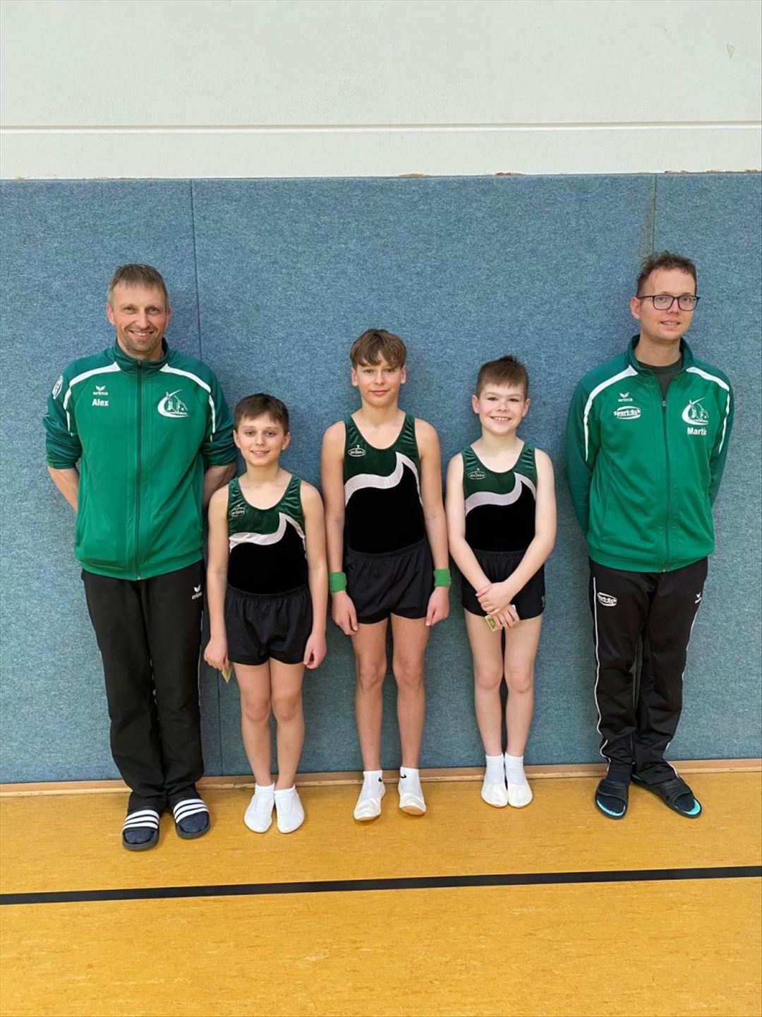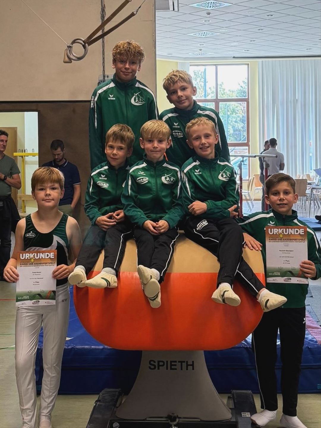 Die Mannschaft der AK 8/9 mit Elias Kraft, Titus Heirler, Gustav Deckwart und Albrecht Tschofen verfehlte knapp die Podestplätze und landete auf Platz 5. Die besten Einzelleistungen erbrachte Elias mit Platz 2. In der LK 4 bis 14 Jahre gingen Hendrik Deckwart, Nick Förster, Hannes Mögel, Franz Knorr und Richard Funk an den Start. Alle fünf zeigten hervorragende Übungen und erturnten sich gemeinsam ebenfalls Platz 5. Hier war Hendrik mit dem 5. Platz bester Einzelturner.