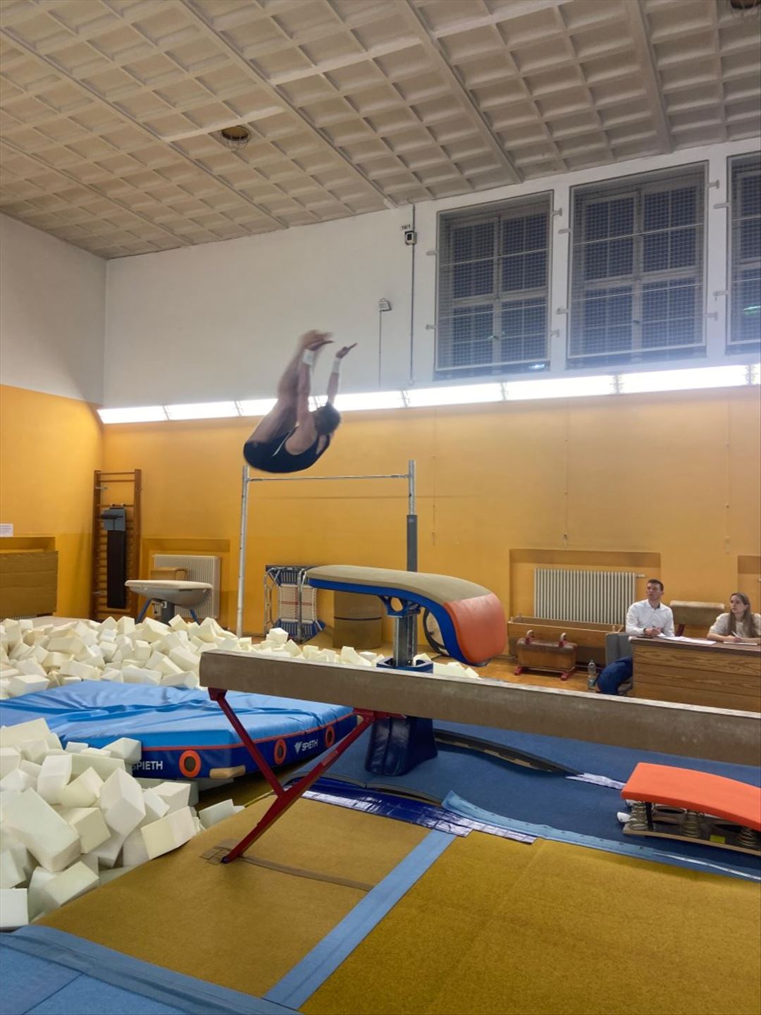Donnerstag fanden dann die Wettkämpfe unserer Turnerinnen und Turner statt. Die Frauen starteten am Morgen und anschließend mussten die Männer an die Geräte. Natürlich waren die anderen von uns immer zum anfeuern dabei. Dadurch, dass es jeweils über 500 Teilnehmer gab, konnte man sich im Vorfeld in einen Zeitslot einbuchen, in dem man turnte und dann auch die Geräte und das Kampfgericht aussuchen.