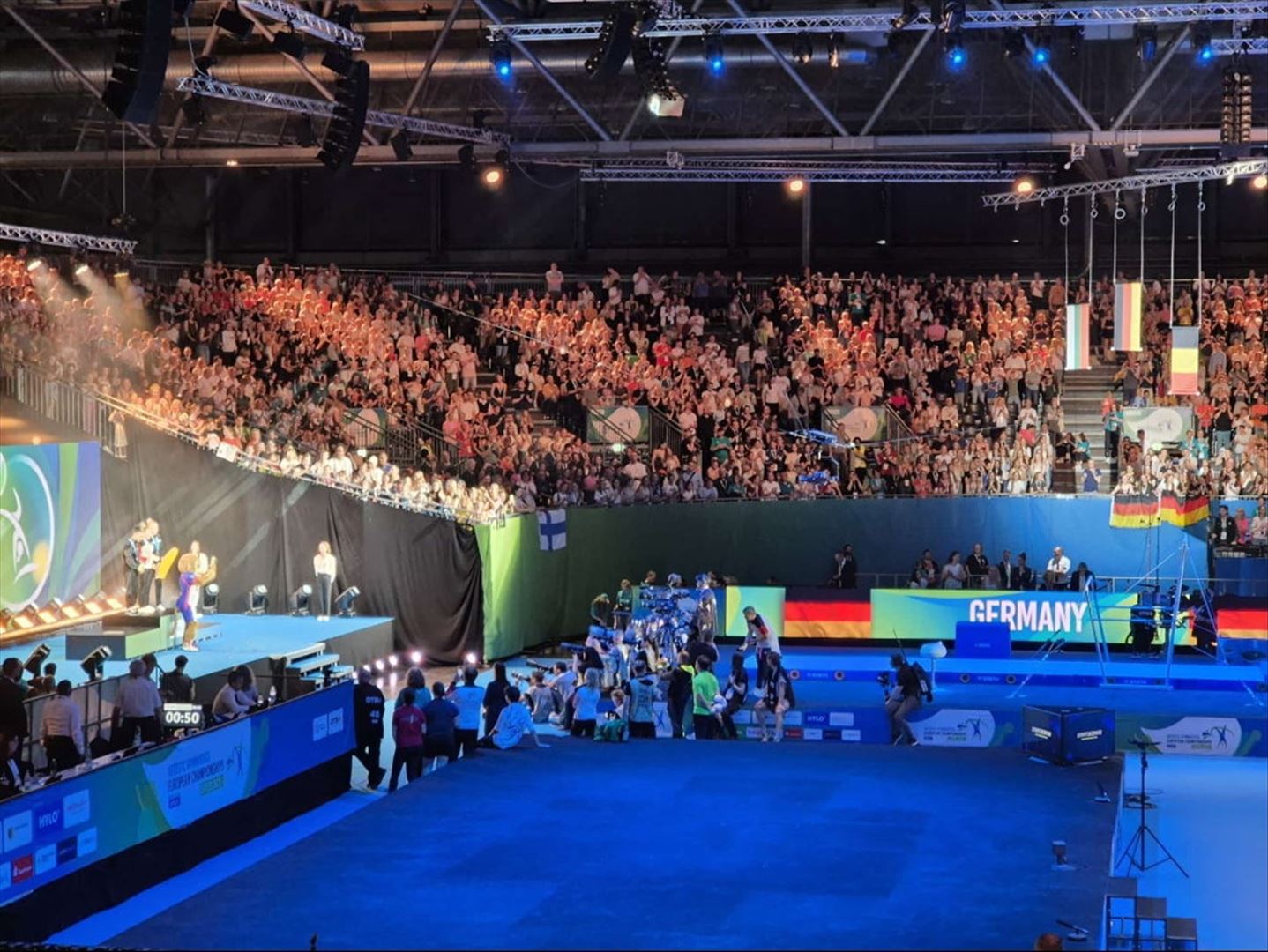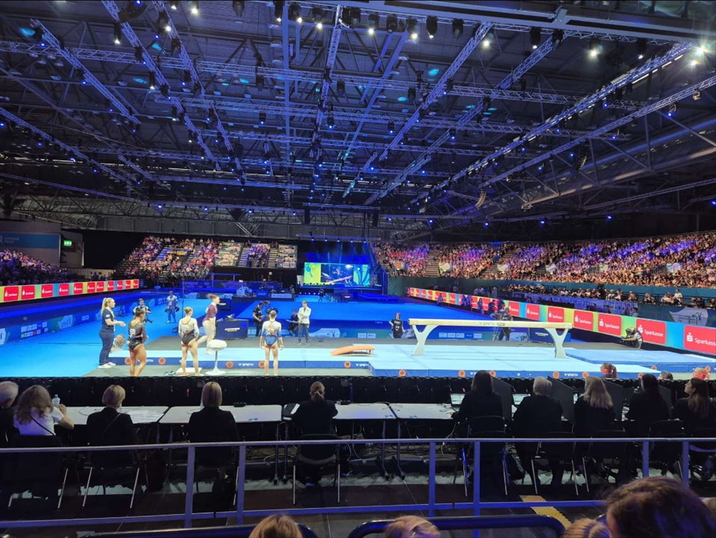 Am Freitag fanden Workshops statt die einige von uns besuchten, während die anderen zum Zuschauen in den Hallen unterwegs waren. Danach ging es in die Messehalle zum 1. Finale der Frauen EM. Danach ging es in die Quarterback-Arena zum „Feuerwerk der Turnkunst“ was sehr beeindruckend war.
