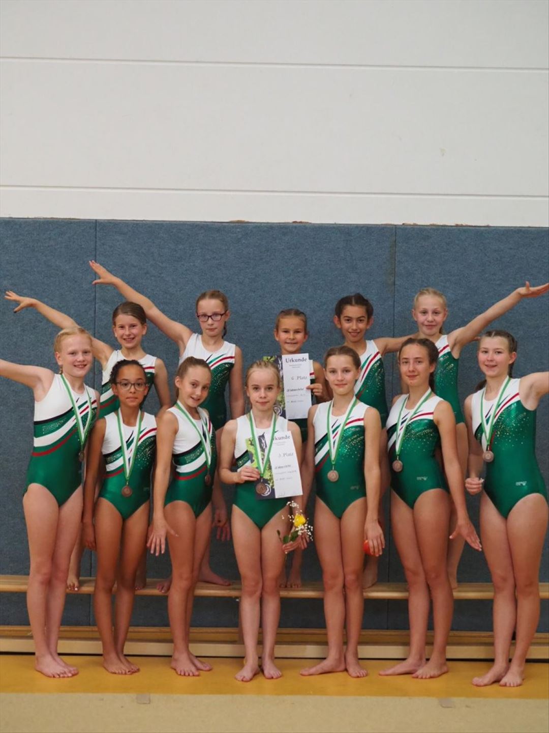Vormittags mussten unsere kleinen Mädels in der AK 6/7 und 8/9 ran, was vor allem die Kleinsten hervorragend meisterten. Die Mannschaft, bestehend aus Mia Schneidereit, Pia Uhlemann, Lena Dietrich, Alea Gäde und Frieda Michael, konnte sich nach allen vier Geräten über den Sieg und damit den Kreismeistertitel freuen.