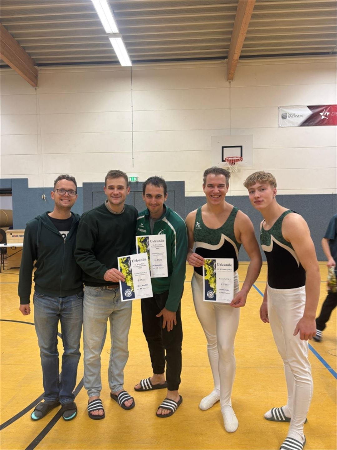 Bei den Männern in der LK3 turnten den Wettkampf, der Teil der Dresdner Turnpokalrunde ist, Friedrich Michel, Ben Kreuzer, Marian Röthig, Paul Schlicke und Alexander Swiersy. Mit teils neuen Elementen bzw. wieder erlernten Elementen in den Übungen verpasste die Wesenitztaler Mannschaft nur knapp das Podest und erturnte sich den 4. Platz.
